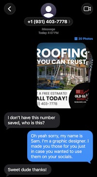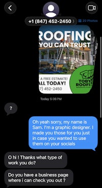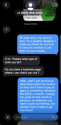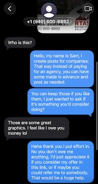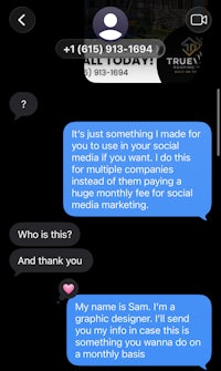 “Oh yeah, sorry. My name is Sam, I’m a graphic designer. I made these for you just in case you wanted to use them on your socials.”