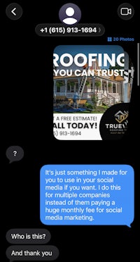Look at the files sent to you. Download them. Copy the phone number and start a new message with that number. Send all 20 to the prospect. Nothing more.